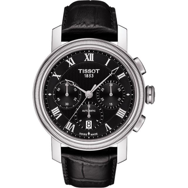 【TISSOT】Bridgeport 羅馬計時機械腕錶-黑-42mm(T0974271605300)![]()