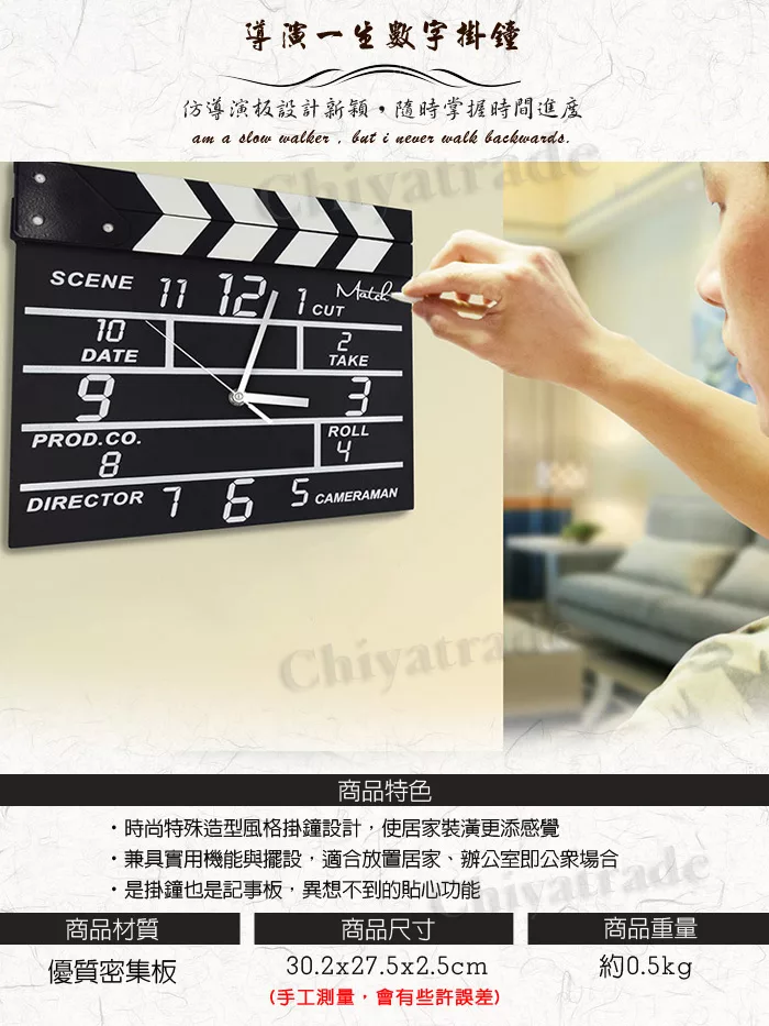 【創意MOVIE SET CLOCK】導演一生 數字時鐘 造型掛鐘 創意壁鐘 空間擺飾 導演板 場記板![]()